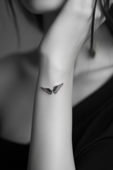 I m all about this piece because sometimes less really is more. The minimalist style gives it a clean, timeless elegance that won t clash with future tattoos or feel out of place. It s subtle enough to go unnoticed but powerful when you catch a glimpse. It s perfect for someone who wants a piece that s symbolic but not in-your-face. I can t help but feel it has that secret, guardian-angel vibe, and who wouldn t want a bit of angelic grace inked on them?
