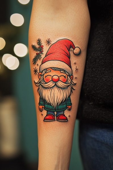 I mean, who wouldn t love this adorable little guy? It s the kind of tattoo that makes you smile just looking at it. There s something magical about this happy gnome that feels like a warm hug on a chilly December day. It s playful, charming, and festive without being too serious. If you re into fun, whimsical holiday ink, this design will have you caroling your way through the season with joy.