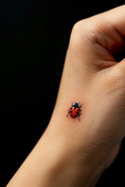 Honestly, this is such a cute and clever little tattoo! I love how something as small as a ladybug can carry so much charm. It s got a bit of whimsy, and the lifelike details make it seem like the bug might crawl off at any second. If you re into tiny tattoos with personality, this one s a perfect choice. It s playful, fun, and adds a little splash of color to your day without taking up too much space. Plus, who doesn t love a bit of good luck with a ladybug tattoo?