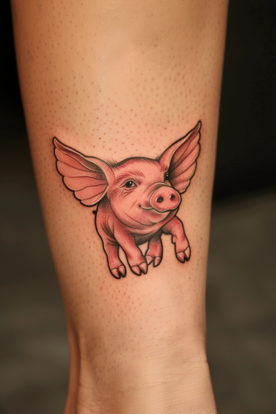 This tattoo is pure fun! It s a great way to add some humor and personality to your ink collection. The flying pig is a classic symbol of the impossible becoming possible, making it both whimsical and meaningful. If you re looking for a tattoo that s quirky, unique, and sure to make people smile, this flying pig hits the mark!