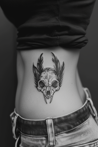 Feathered Feline Skull Tattoo: A Wild and Mysterious Look