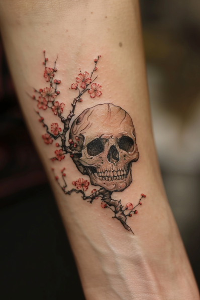 Skull and Cherry Blossom Tattoo: A Balance of Life and Death