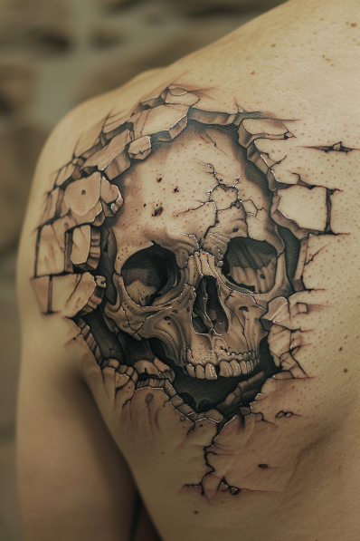 Cracked Wall Skull Tattoo: Breaking Through the Surface