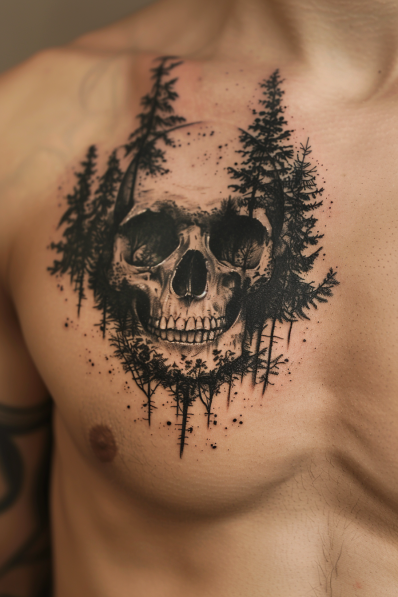 Skull Forest Tattoo: A Haunting Blend of Nature and Mortality