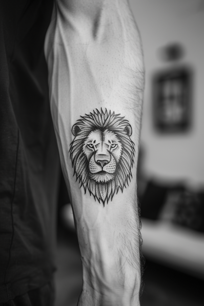 I think this tattoo is awesome because it doesn t try too hard to impress. It s all about the essence of the lion, capturing its regal nature without any unnecessary flourishes. The placement on the forearm is perfect for showing it off, too. If you want something that s both strong and understated, this design nails it.