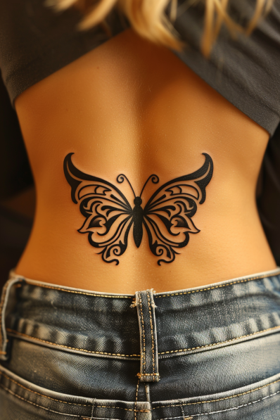 I ve gotta say, this tattoo has that perfect mix of fierce and feminine. The tribal style is timeless, and it adds a powerful edge to the butterfly without losing any of the elegance. It s bold enough to be noticed, but not so over-the-top that it feels heavy. If you re looking for a design that s both classic and edgy, this is the way to go. Plus, lower back tattoos have come a long way, and this one really shows how stunning and modern they can be!