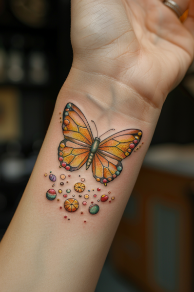 Colorful Confetti Butterfly Tattoo