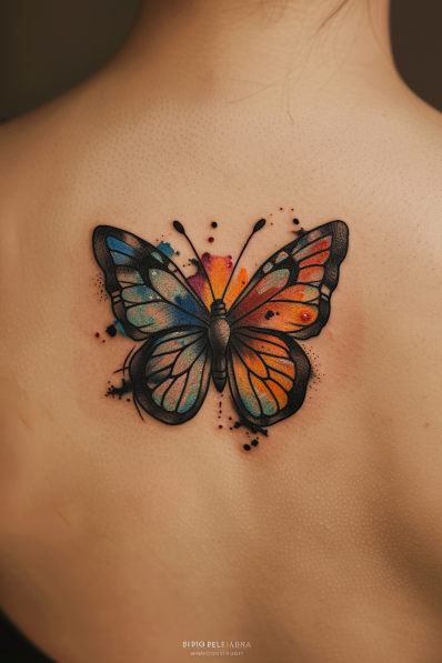 I m obsessed with how fun and eye-catching this one is! It s like someone took a brush and just painted a little burst of joy onto the skin. The black outline of the butterfly contrasts so well with the soft watercolor effect, making it stand out without feeling too overwhelming. If you re into colorful tattoos but still want something elegant, this design is an absolute winner. It s artsy, it s fresh, and honestly, it s the kind of tattoo that ll have people stopping you to ask, Where d you get that?!