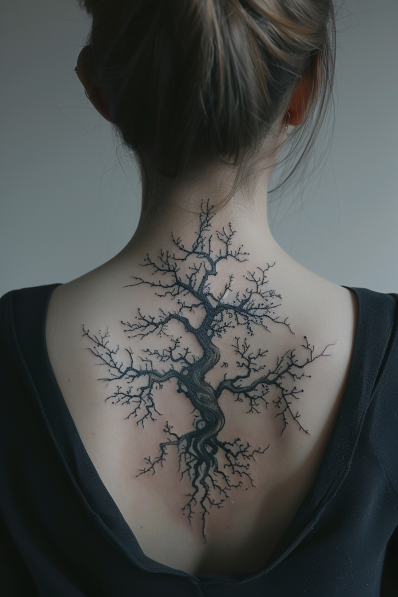 I have to say, this tattoo is absolutely captivating. The way the tree and vines blend together feels like a perfect representation of growth and connection. It s the kind of tattoo that tells a story, one that s deeply rooted in the symbolism of nature. I love how it covers the back, creating a piece that s both bold and elegant. It s like wearing a piece of art that s as complex as it is beautiful. If you re into tattoos with deep meaning and a striking visual impact, this tree vine design is definitely a standout choice.