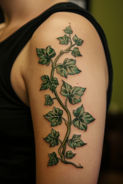 Okay, I have to admit, this tattoo is seriously cool. The watercolor style is just on point, giving the whole piece a fresh, artistic vibe. Ivy symbolizes growth and resilience, which makes this design not only beautiful but also meaningful. And let s be real, who wouldn t want a tattoo that looks like living art? If you re into nature-inspired tattoos that stand out without being overly flashy, this ivy vine design is definitely worth considering. It s got just the right balance of subtlety and impact!