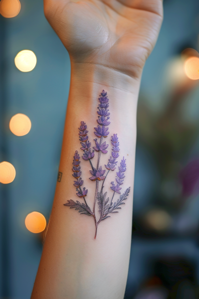 I ve got to say, I m completely smitten with this tattoo. There s something so calming and serene about lavender, and having it permanently on your skin is like carrying a little piece of tranquility with you. The realistic detail is just incredible it s like having a tiny bouquet right on your wrist! Plus, lavender is often associated with relaxation and peace, which makes this tattoo not just beautiful, but also deeply meaningful. If you re after a tattoo that s both elegant and soothing, this lavender vine design is a perfect choice. It s simple, sweet, and absolutely charming!