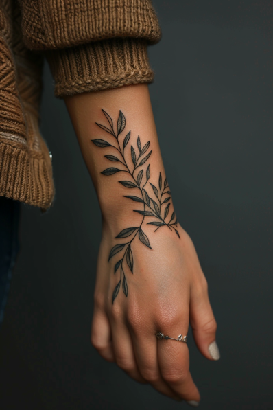I really love this tattoo s minimalist style. It s the kind of design that feels both subtle and meaningful, making it a perfect choice for everyday wear. The way the vine follows the curve of the wrist and hand is just beautiful, almost like a piece of jewelry that you never have to take off. If you re into tattoos that are chic, timeless, and easy to love, this leafy vine design is definitely a winner. It s got that quiet elegance that s hard to beat, making it both versatile and incredibly stylish.