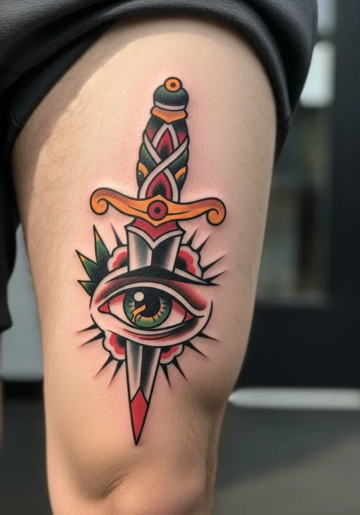 Eye and Dagger Thigh Tattoo Design