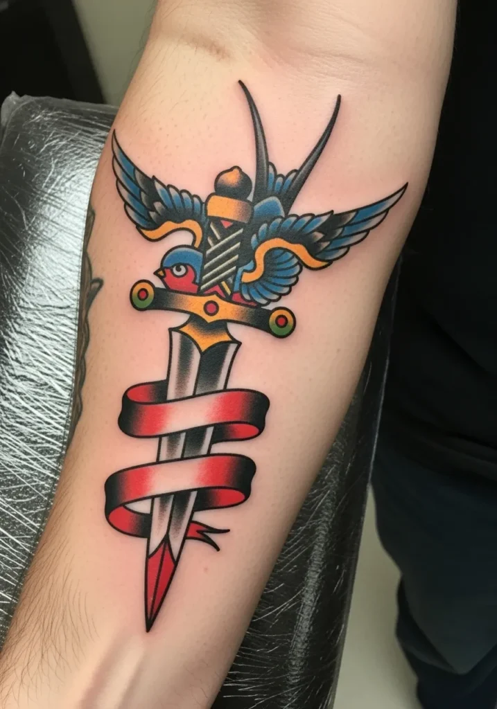 Swallow and Dagger Forearm Tattoo Design