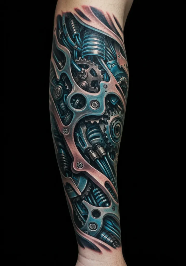 I honestly find this tattoo so impressive because it feels like a work of art and science all at once. The detailing is just insane, and the pop of blue adds such a cool, modern twist to the industrial vibe. It s one of those tattoos that makes you want to lean in for a closer look because the textures are so rich and layered. I love how it feels strong, bold, and just a little futuristic without being too over the top.