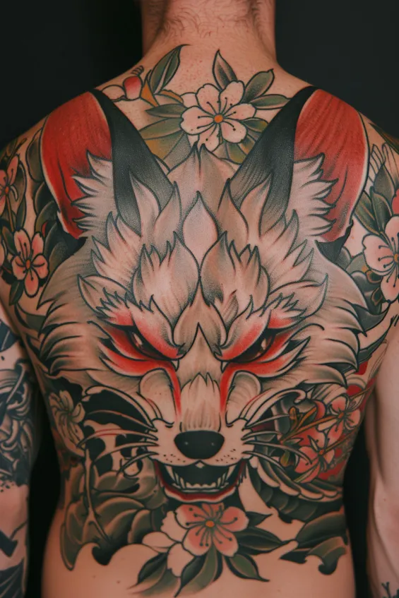 Fierce Kitsune Back Tattoo