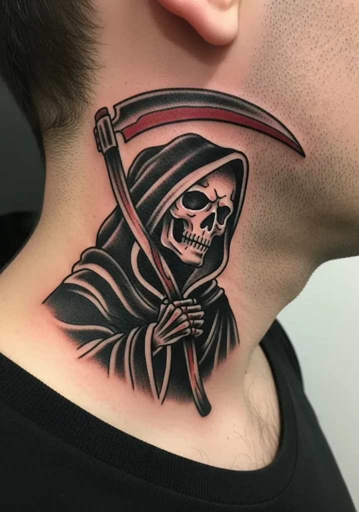Grim Reaper Neck Tattoo
