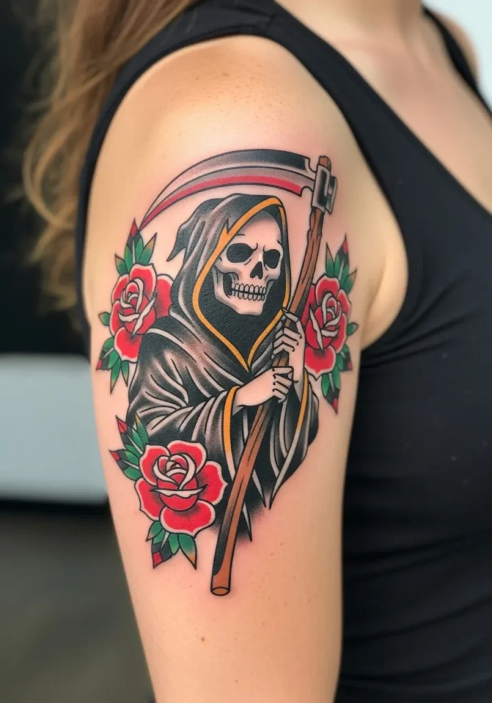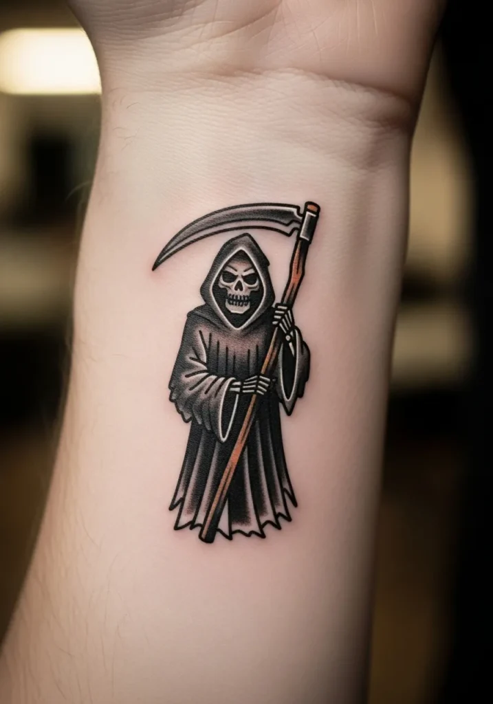 20 American Traditional Grim Reaper Tattoos That Stay Hauntingly Cool