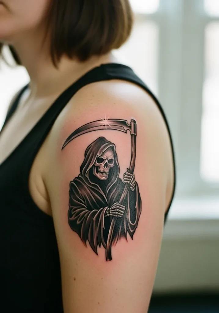 I love how these tattoos can be as fierce or as symbolic as you want them to be. For some, it s about facing mortality with strength. For others, it s just an undeniably cool aesthetic. Either way, these Grim Reapers totally steal the show.