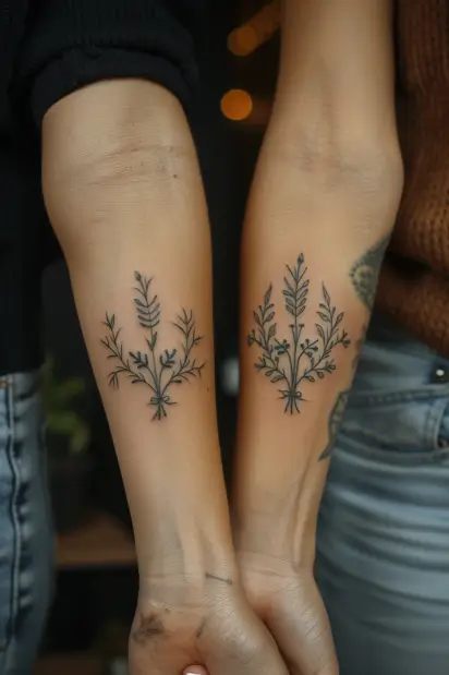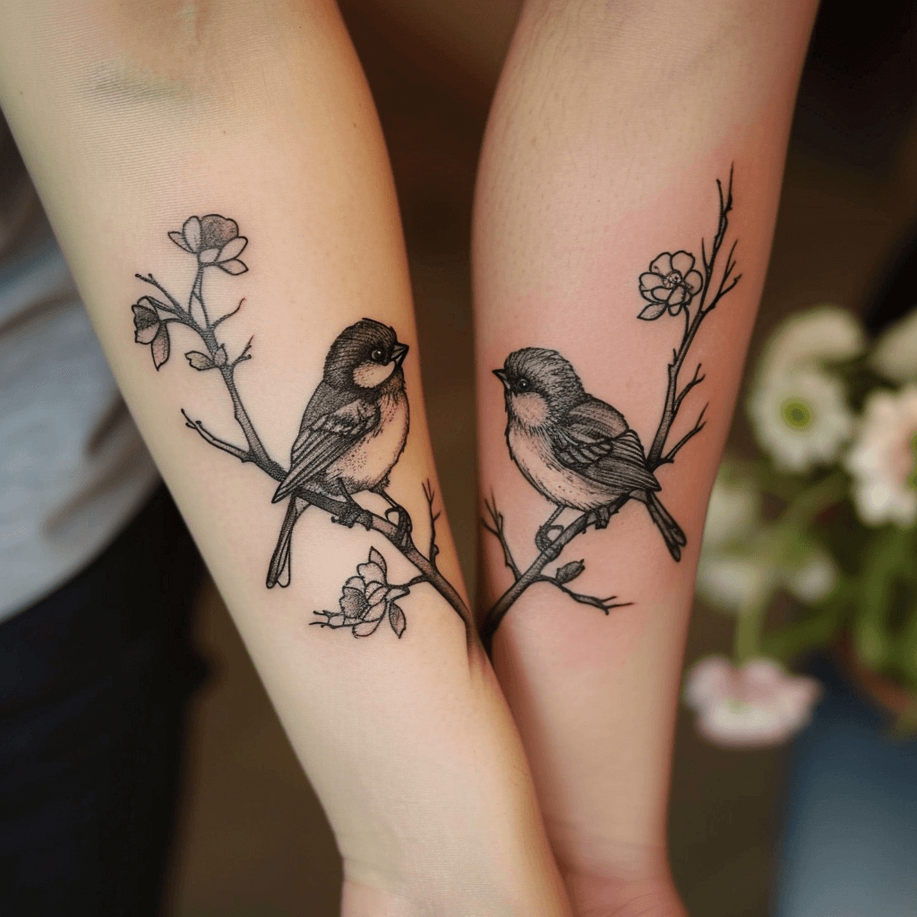 I find this design beautiful because it represents freedom, growth, and the natural bond between the sisters. The elegant and detailed artwork makes these tattoos a timeless choice.