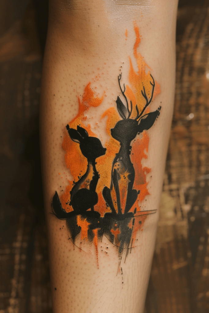 I find this tattoo cool because it combines elements of nature with artistic expression. The animal silhouettes represent grace and strength, while the vibrant colors add a touch of creativity. This design is perfect for siblings who share a love for the wild and artistic flair. Matching animal silhouette tattoos are a great way for brothers and sisters to celebrate their bond in a unique and beautiful way.