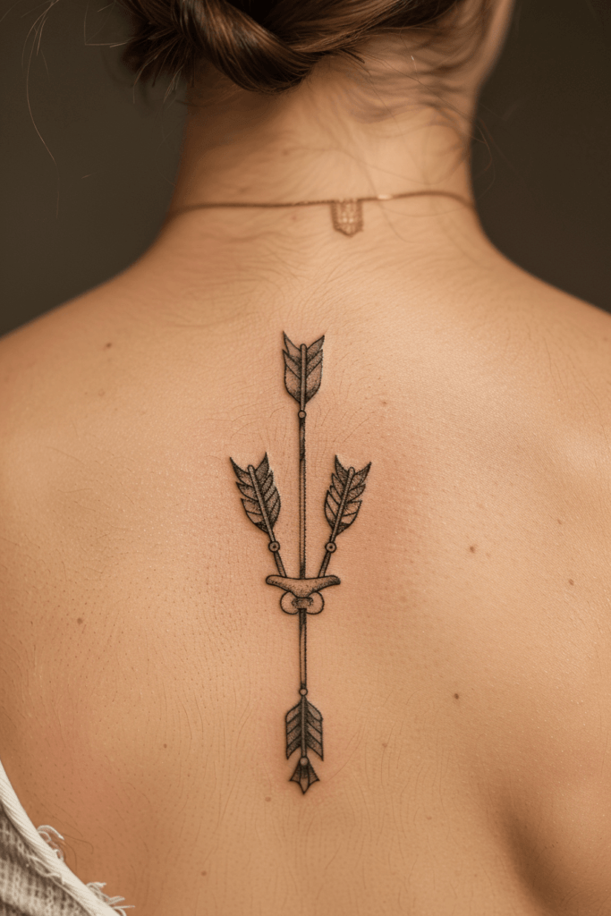 This tattoo features two arrows pointing upward on the back. The detailed feathers and clean lines create a balanced design. I like this tattoo because it symbolizes direction and protection, reflecting the support siblings provide each other.