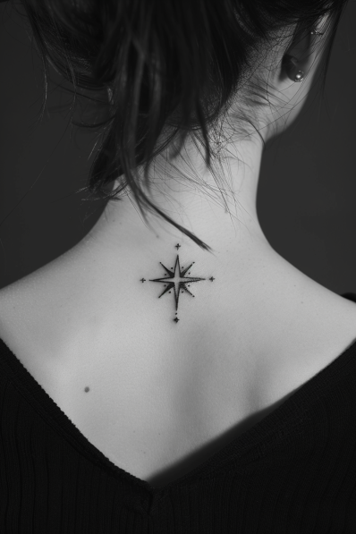 I think this tattoo is really special because it represents guidance and finding your way whether that s in life, love, or something more personal. It s subtle but powerful, and the small stars add a magical, dreamy vibe. If you re someone who loves tattoos with meaning, this compass star feels like a perfect choice. Plus, the upper back placement makes it look super elegant and timeless. It s like carrying a little piece of the night sky with you wherever you go.