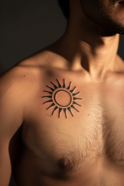 I think this tattoo is super impressive because it s more than just a cool design it feels empowering. The sun has always been a symbol of life and energy, and having that inked on your chest makes a powerful statement. It s bold without being over-the-top, and I love how clean and intentional it looks. If you re looking for a tattoo that makes you feel like you ve got a constant source of energy right on your skin, this is it!