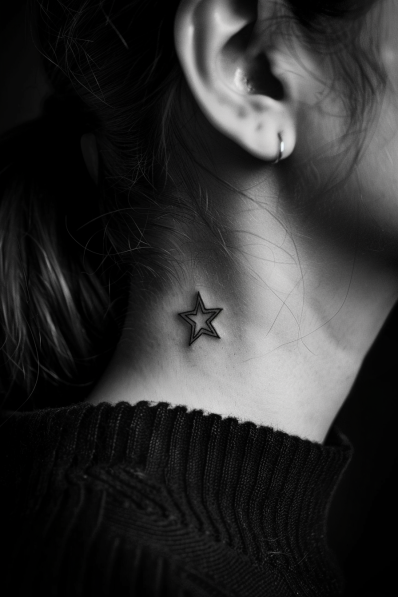 This simple star tattoo is small but packs a punch with its sharp, clean lines. The design features a basic black star outline, making it both subtle and eye-catching at the same time. It s perfectly placed for those who want a tattoo that s not too in-your-face but still has a bit of attitude. The star itself is a classic symbol of guidance, dreams, or personal milestones, which adds depth to such a straightforward design.