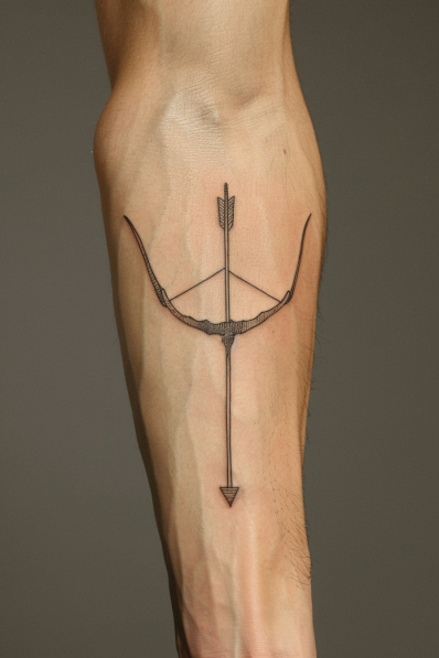 I really like how this tattoo strikes a balance between being subtle and powerful. The bow and arrow have been timeless symbols of strength and precision, and this design captures that without being too flashy. Plus, there s something inspiring about having an arrow inked on your arm it s like a constant reminder to stay focused and keep moving toward your goals. Simple, clean, and meaningful this tattoo hits the mark!